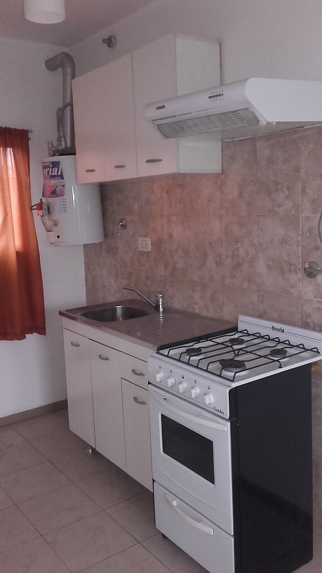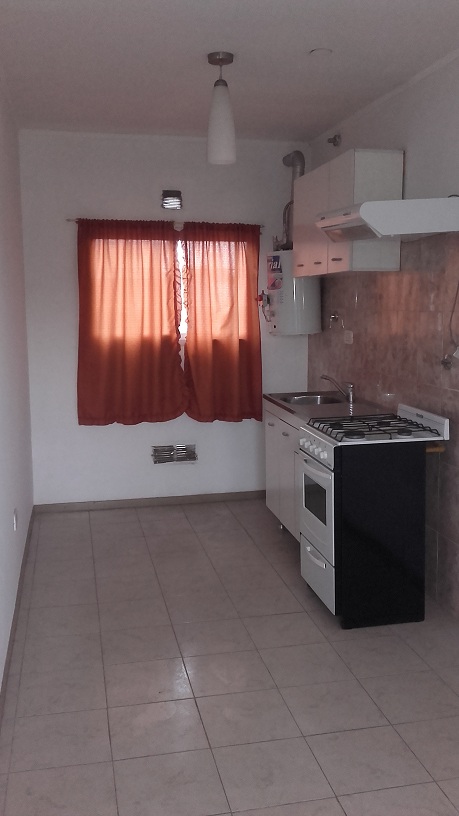 Departamento de dos ambientes en primer piso. Consta de living comedor con cocina con extractor y muebles sobre y bajo mesada, un dormitorio y baño completo.