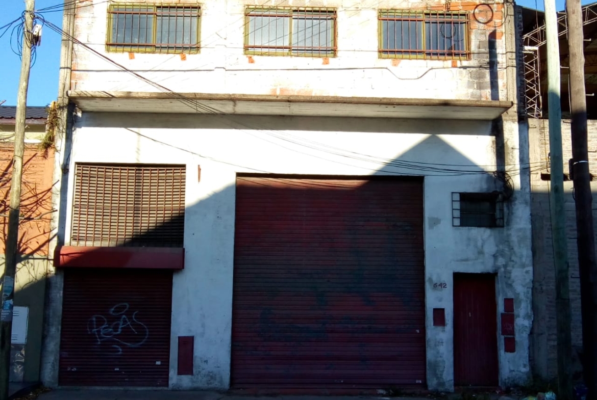 Galpón de ocho metros sesenta y seis de frente por dieciséis metros de fondo que posee entrada para camiones y vivienda con entrada independiente en su planta alta.